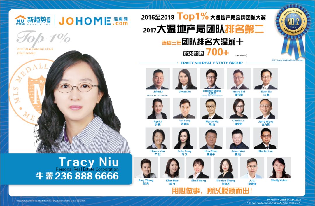 而团队领袖Tracy在地产界拼搏八载,已是大温顶尖金牌经纪。真诚、勤奋是Tracy团队的取胜法宝。