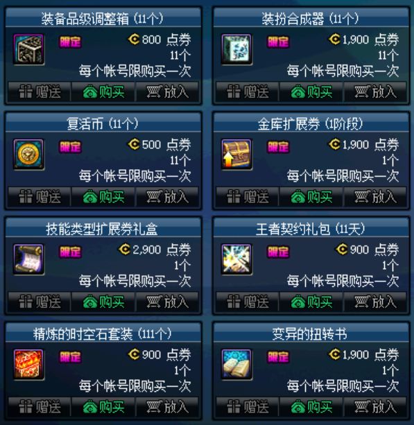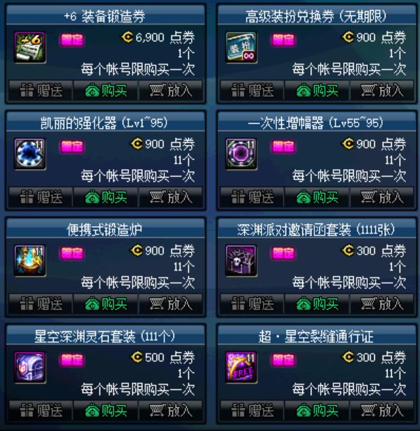 活动期间内商城内新增特惠狂欢商店,所有道具限购且仅限使用点券购买。