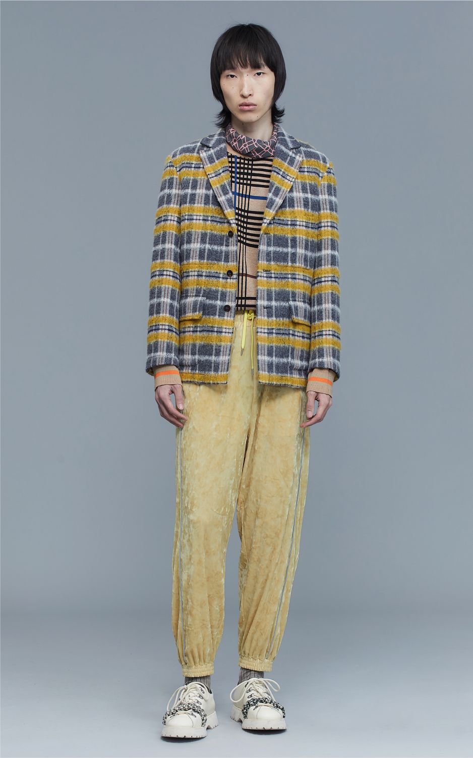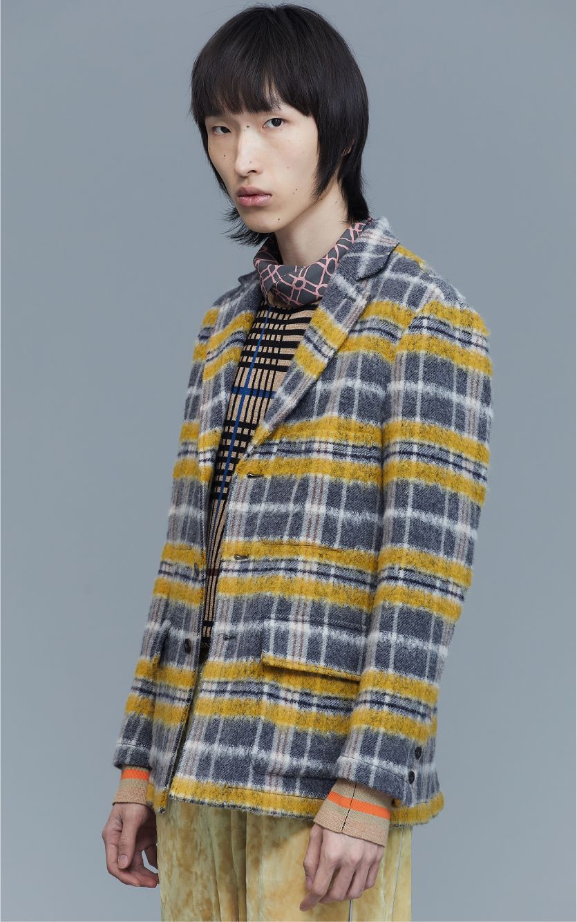 这款西服采用了经典的版型,能很好地凸显身材比例。苏格兰格纹配色新颖大胆,选用羊毛、马海毛、涤纶纱线交织,格纹立体感更强烈,布面肌理感丰富,冲击你的视觉感官。