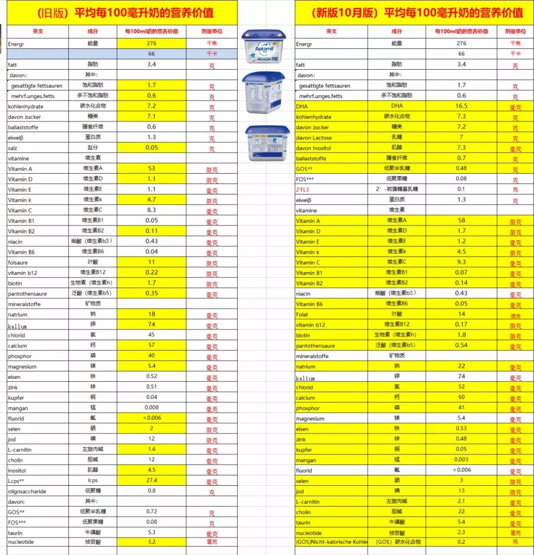 一图看懂德国爱他美白金版新旧装区别:看成分就知道为何会涨价