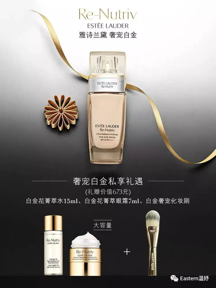 雅诗兰黛白金养肤粉底液有50%修护精华,上妆就养肤,非常的服帖,肌肤就像奶油一样光滑,专为亚洲人定制!