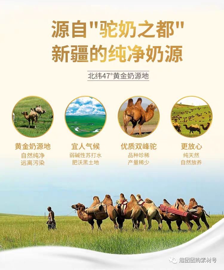 自然界中有一种生命力极强,免疫力极强的动物,那就是“沙漠之舟”骆驼,被称为“全兽”骆驼产出的奶又被誉为“奶中之王”“沙漠白金”营养价值极其丰富,源自奶源黄金带的优良品质,补充营养,增强抵抗力和免疫力!