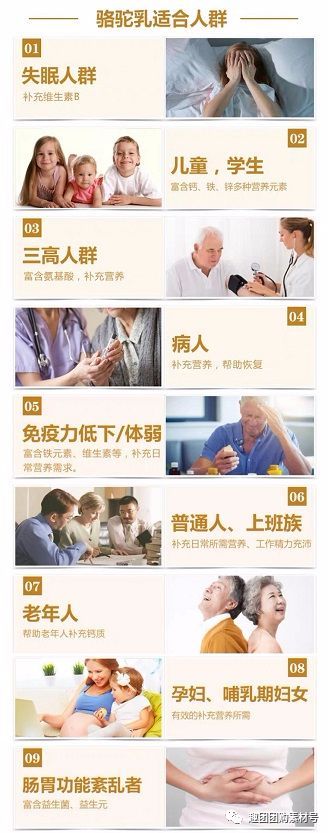 常喝驼乳粉可提高免疫细胞数量和活性,减少体内病菌、真菌和变质细胞,保持肠胃、血液、五脏的健康与年轻,适合多种人群,孩子老人、孕产妇、哺乳期、肠胃不好,营养不良,早晚喝更易吸收,家庭必备的营养好产品。
