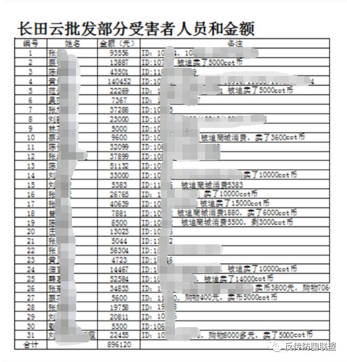 部分受害人名单及金额