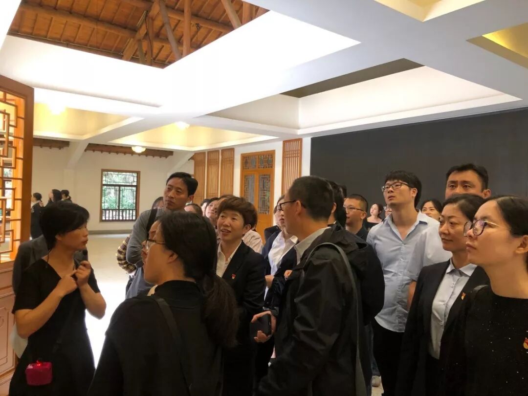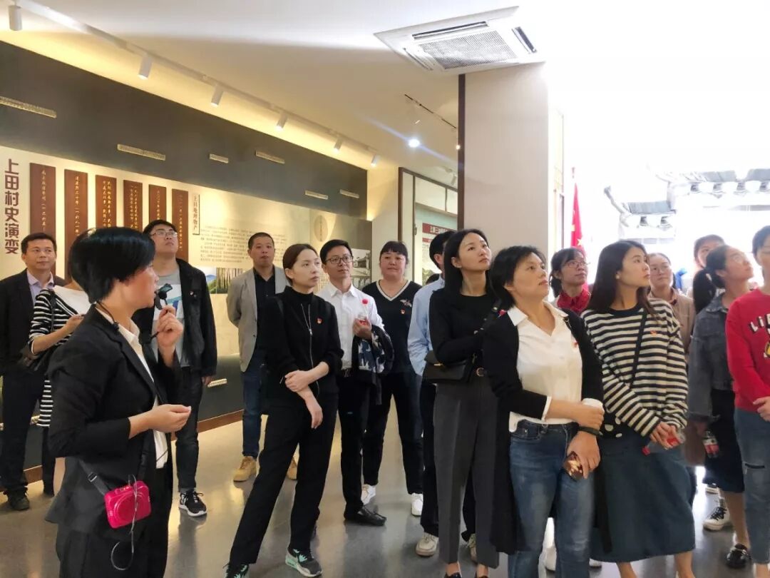 走进上田,映入眼帘的便是整洁的村舍,优美的绿植以及恢宏大气的文化礼堂。在讲解员的介绍中党员们了解到上田村从当初那个贫困小乡村转变为如今的新农村示范点的秘诀就在于:党建树魂、文化归心、法治护航、自治安村、创富惠民。以党建为核心,经济、法制、文化、安全齐头并进的村建模式为上田村带来了如今改头换面的新气象。