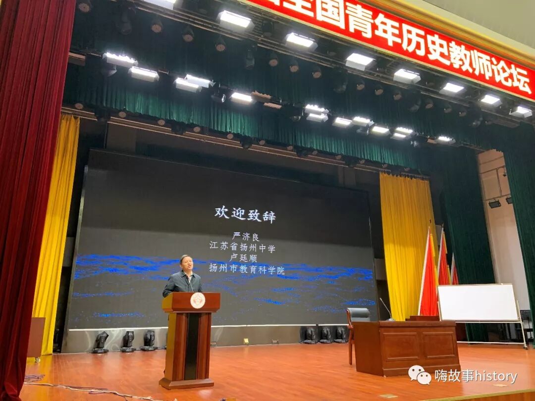 2019年10月25日第三届全国青年历史教师论坛暨名师工作室年会在江苏省扬州中学召开,本次会议的主题是“历史教育的新使命:构建人类命运共同体”,来自全国各地500多位历史教师参与了盛会。龚磊、吴云两位老师倡议本论坛公约,陈国兵老师主持大会。扬州中学校长严济良、扬州市教育科学院副院长卢廷顺两位领导在开幕式上致辞。