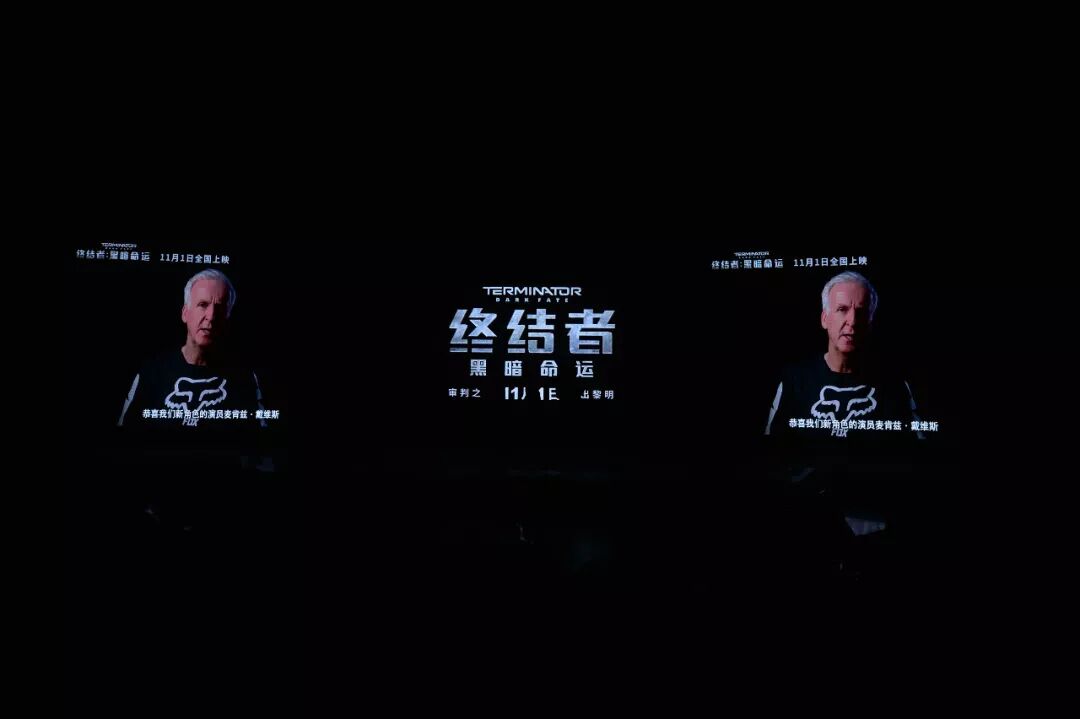 詹姆斯·卡梅隆作为电影《终结者:黑暗命运》的制片人及编剧,录制VCR隔空问候热爱自己的中国影迷:“你们知道这是改变我一生的电影,终于我能亲手再创作这个故事,施瓦辛格和汉密尔顿是这个战场中绝对不能缺少的人,《终结者》因他们而精彩,新鲜血液的加入让这个战场变得更加刺激、紧张、扣人心弦,欢迎你们来到这个战场”。