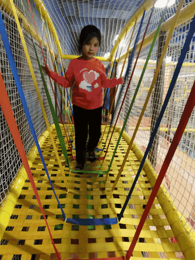 无尽的探索带来的是每个转角的惊喜激发孩子们的好奇心和探索精神长长网格的通道小朋友或匍匐前进或弯腰走独木桥