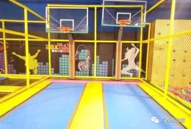 篮球区身高不够,蹦床来凑!看过《灌篮高手》的人心中都有一个篮球梦大风车、单手暴扣、转体背扣来这里就能实现篮球梦