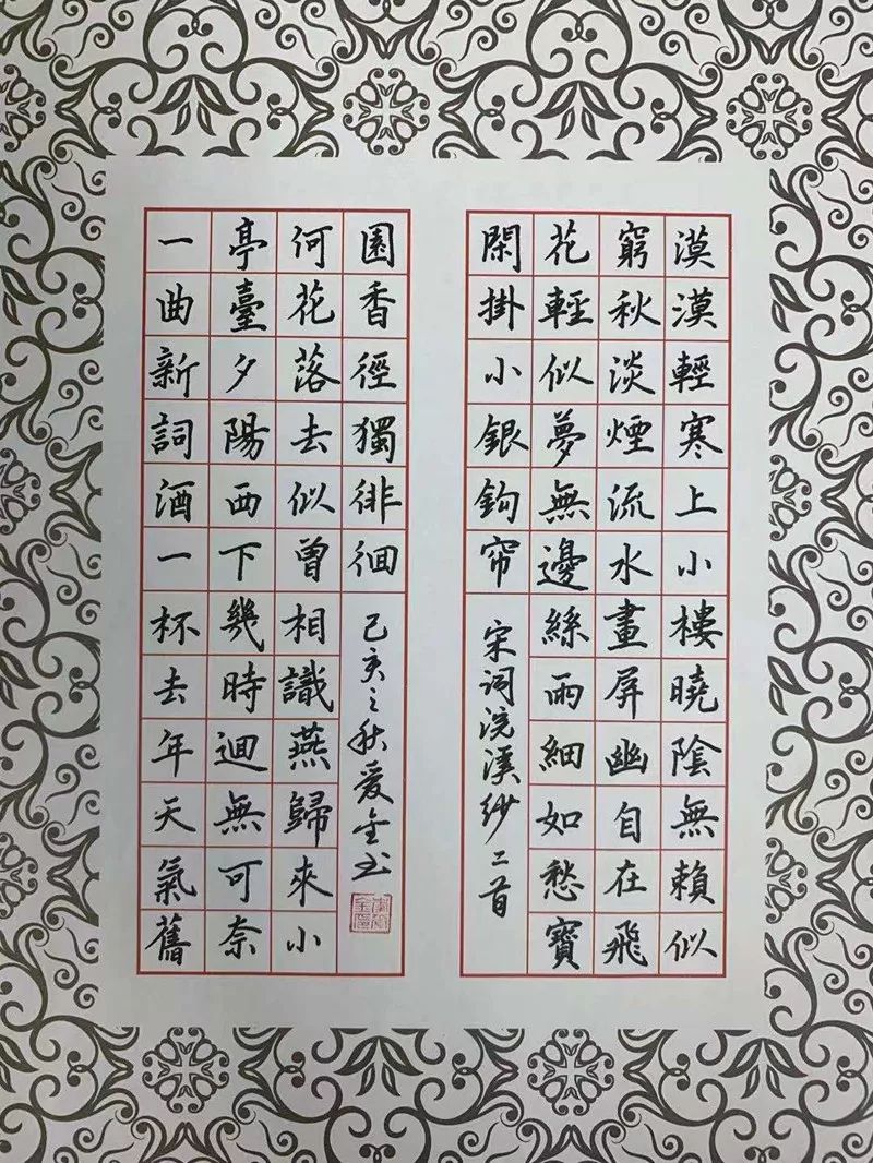 集团机关党总支书记李爱金硬笔书法作品《浣溪沙二首》