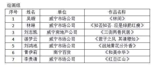参赛作品题材多元、内容丰富,精选出的获奖作品更是视角新颖、主题突出。其中,摄影作品不仅通过相机记录家乡美景,同时积极刻画日常工作生活中的场景,展现了广西的好山好水,突显了威宁人积极向上的精神风貌以及对生活的热爱。诸多书法作品或正草隶篆、笔力非凡,或置阵布势、临见妙哉;绘画作品体裁丰富,作者们精心勾勒,用缤纷的色彩描绘五彩斑斓的艺术世界。值得一提的是,比赛中恰逢集团党委 “不忘初心、牢记使命”主题教育开展,不少职工的书法作品都紧扣主题教育内容,或书写习总书记的讲话摘要,号召增强“四个意识”、坚定“四个自信”、做到“两个维护”;或描绘建设壮美广西的美好愿景,以及为中华人民谋幸福、为中华民族谋复兴的初心和使命……