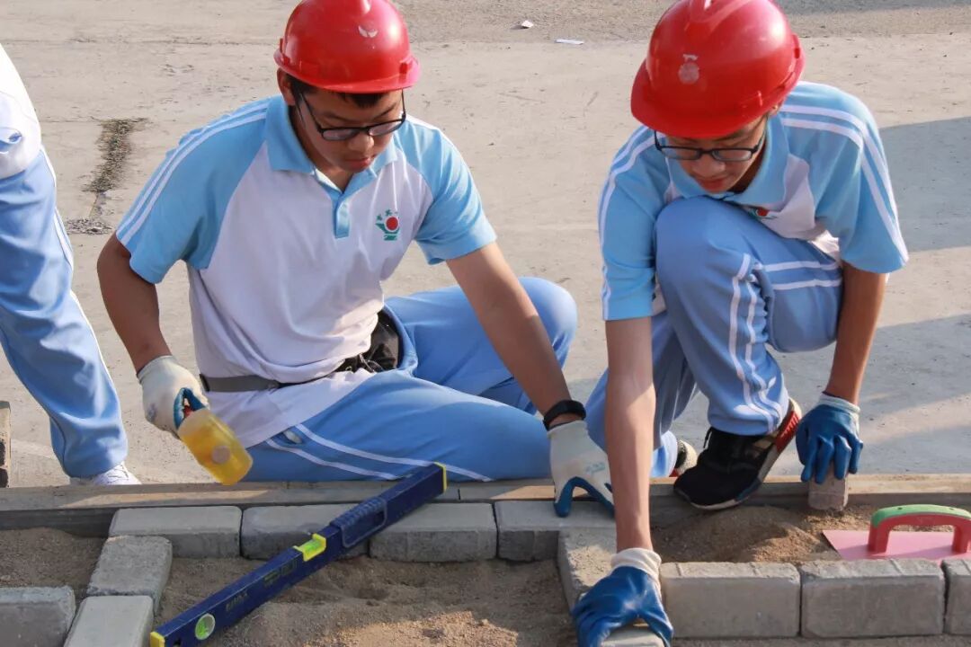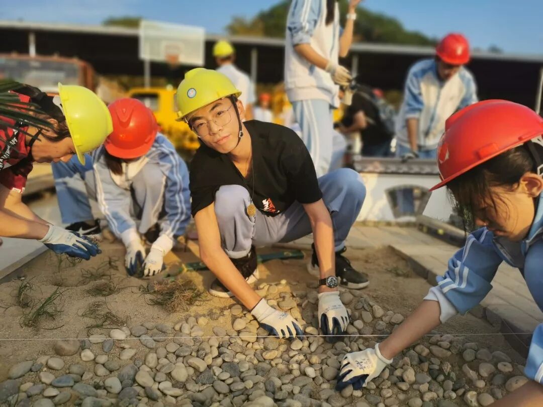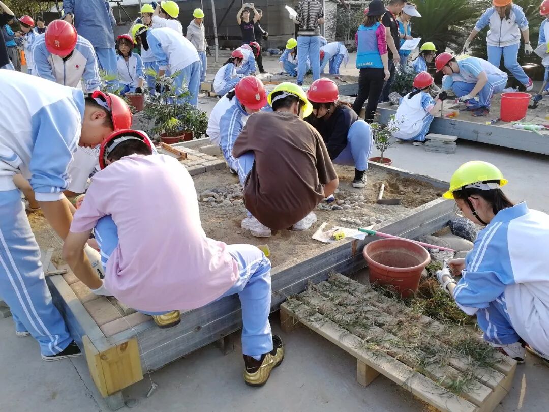 原以为园林微景观设计就像码积木一样简单,但是,当一份图纸、一堆砖、一团线、铁锹锤子、水平尺、螺丝钉摆在你面前时,我们才知道,看似简单的一项工作,其实融入了美术、数学、物理、地理和生物五门学科。葡萄牙石、透水砖都有自己的位置,分毫都不能错,整体规划、放置水平线、挖土铺砖都要同步进行,否则就要不断的调整、重来。两个小时的活动,不仅考验着团队的合作能力,也磨练着我们的耐心、不断挑战着濒临崩溃的心理防线。竞争的气氛也弥漫了整个赛场。我们从最开始的不知所措、各自为阵、低效劳动,到组长的有序指导,再到有条不紊、磨合默契、配合紧密,最终,布局美观的园林呈现在眼前。每一滴汗水见证了我们一起进步的过程!