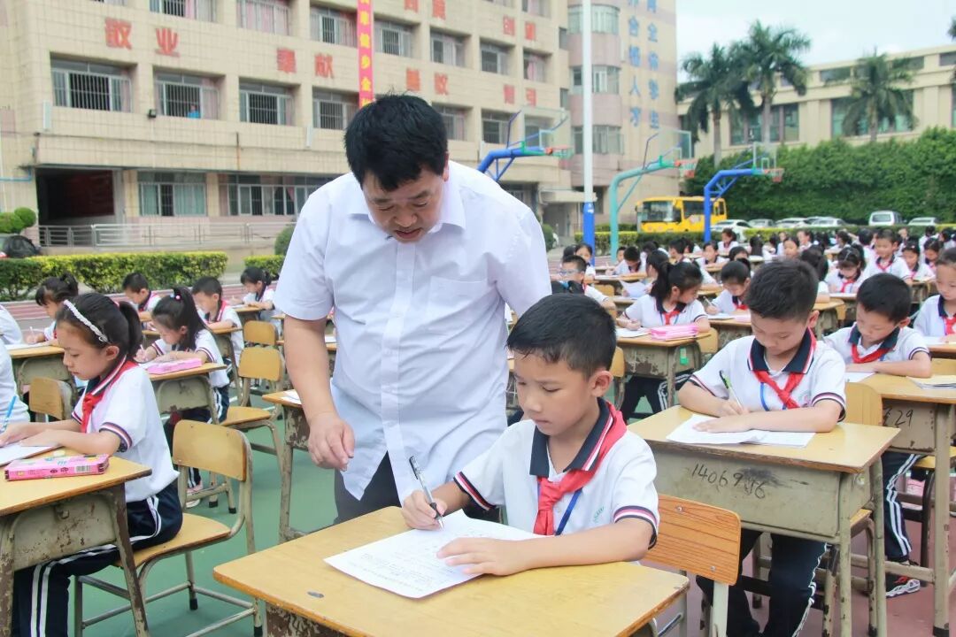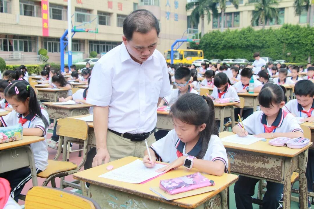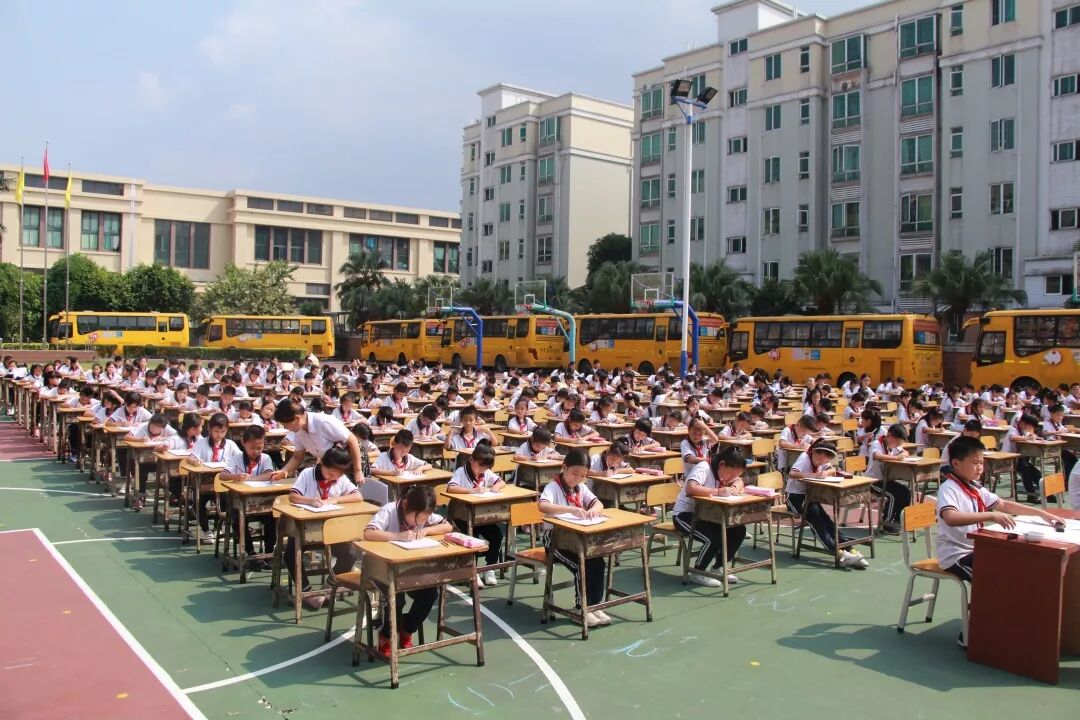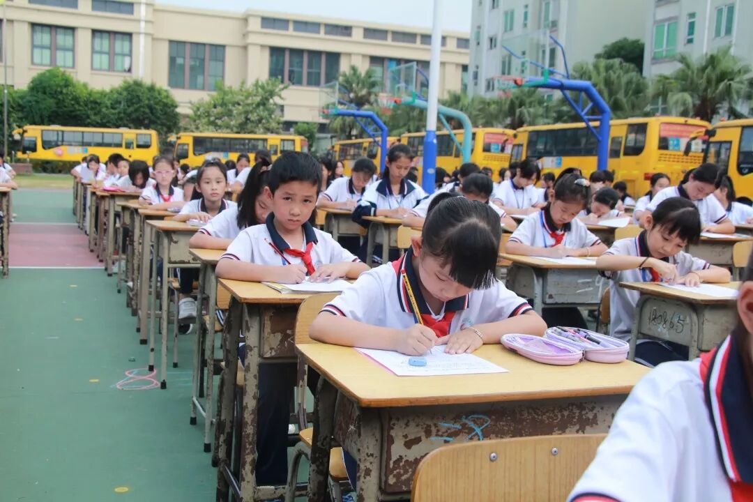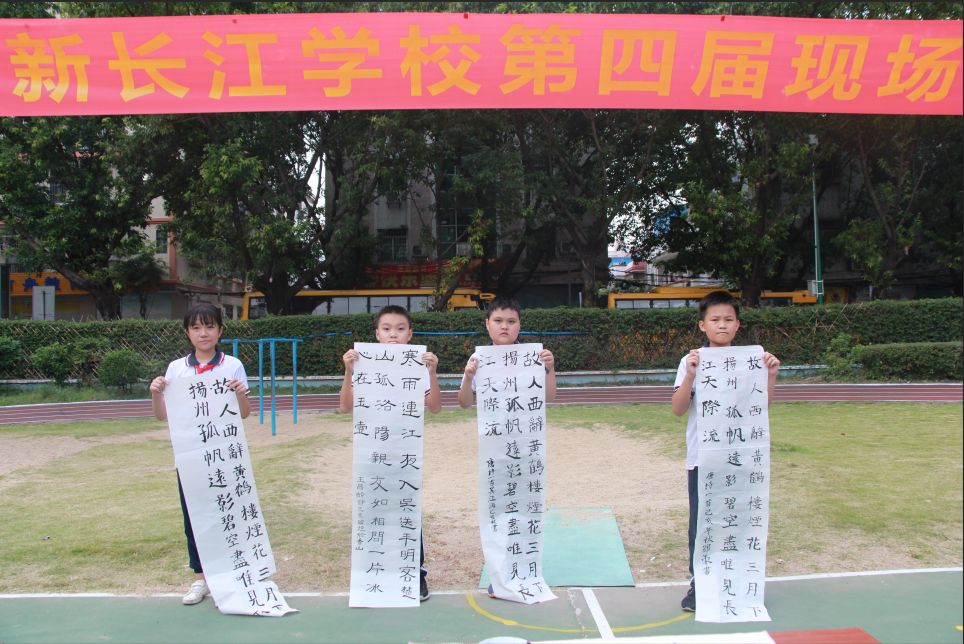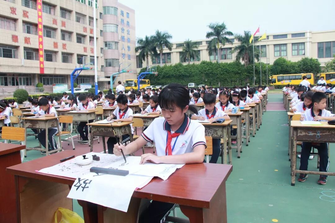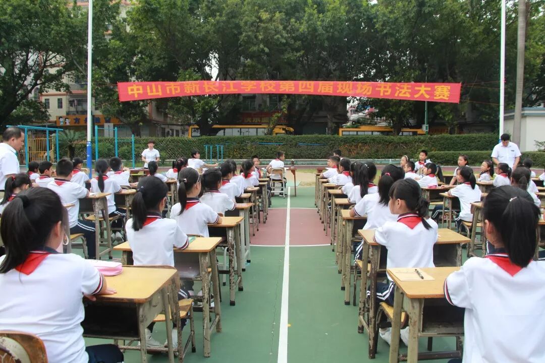 为庆祝新中国成立70周年,丰富校园文化生活,弘扬中华民族传统文化,促进学生形成规范、整洁书写汉字的习惯和技能,坚定文化自信,展示学校书法进课堂的教育教学成果和促进书法教育的持续进步。10月25日下午,中山市新长江学校举行“第四届书法现场大赛”,二至九年级近500名学生齐聚学校运动场,一展才艺。