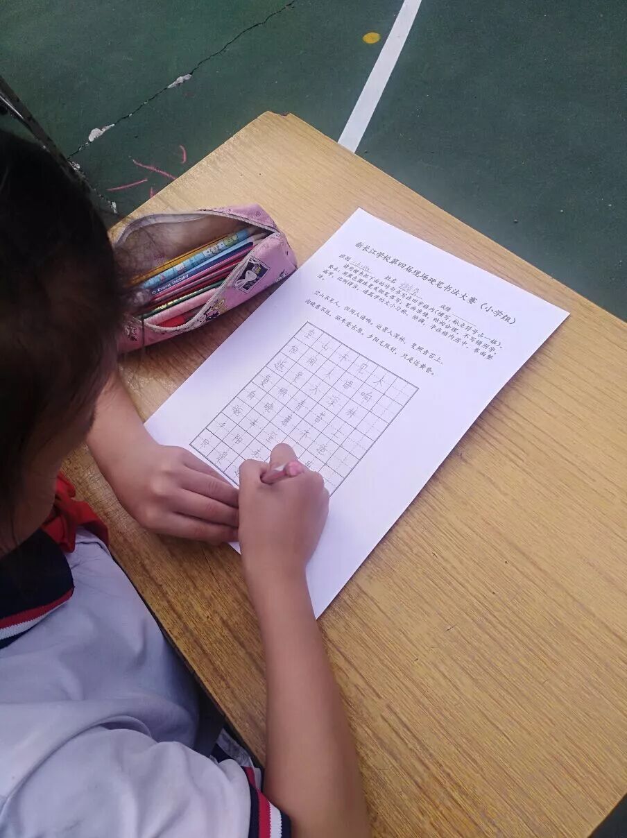 几年来,新长江学校把落实书法教学作为推进素质教育的重要途径,有声有色开展书法教学。学校教务处每学期定期组织全校学生参与硬笔书法比赛,旨在培养学生的基本素养,提高审美的能力。选手们认真、严谨的态度为全校同学做出了榜样,成绩的背后付出的是辛勤的汗水,让全体师生重视书法。