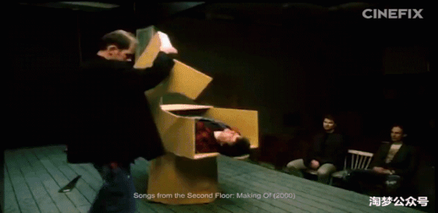 罗伊·安德松导演的《生活三部曲》中100多个小插曲中的每一个都是全新制作的,以便达到自己精确的拍摄角度。实际上,他先把相机放在那里,然后围绕着它构建场景,融入了无缝背景、木偶和微缩模型。
