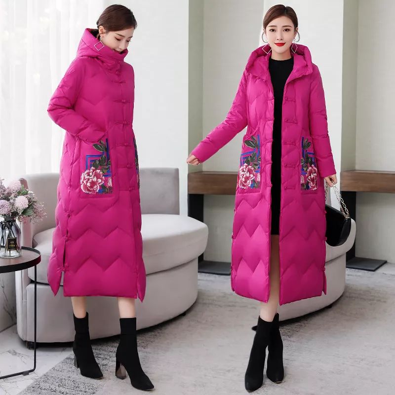 CQ-XFX8868冬季长款棉衣棉服优雅修身时尚口袋舒适纯色保暖
