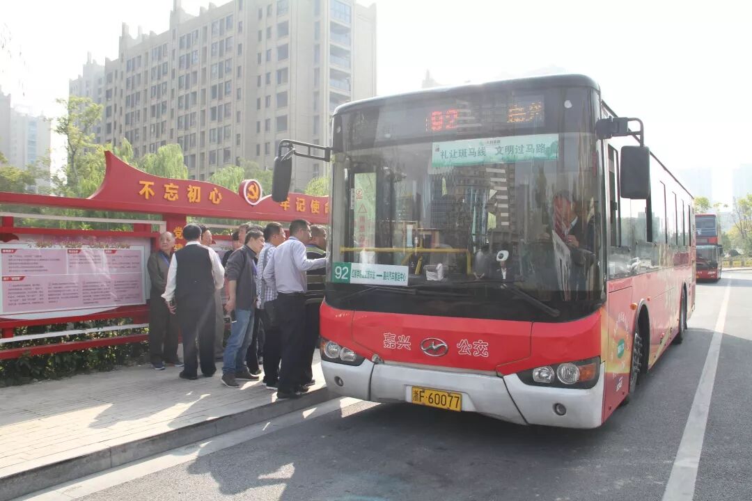 25日上午,由游3路的双层巴士载着各地代表前往红船学院公交首末站,参观92路“不忘初心、牢记使命”主题教育专线。