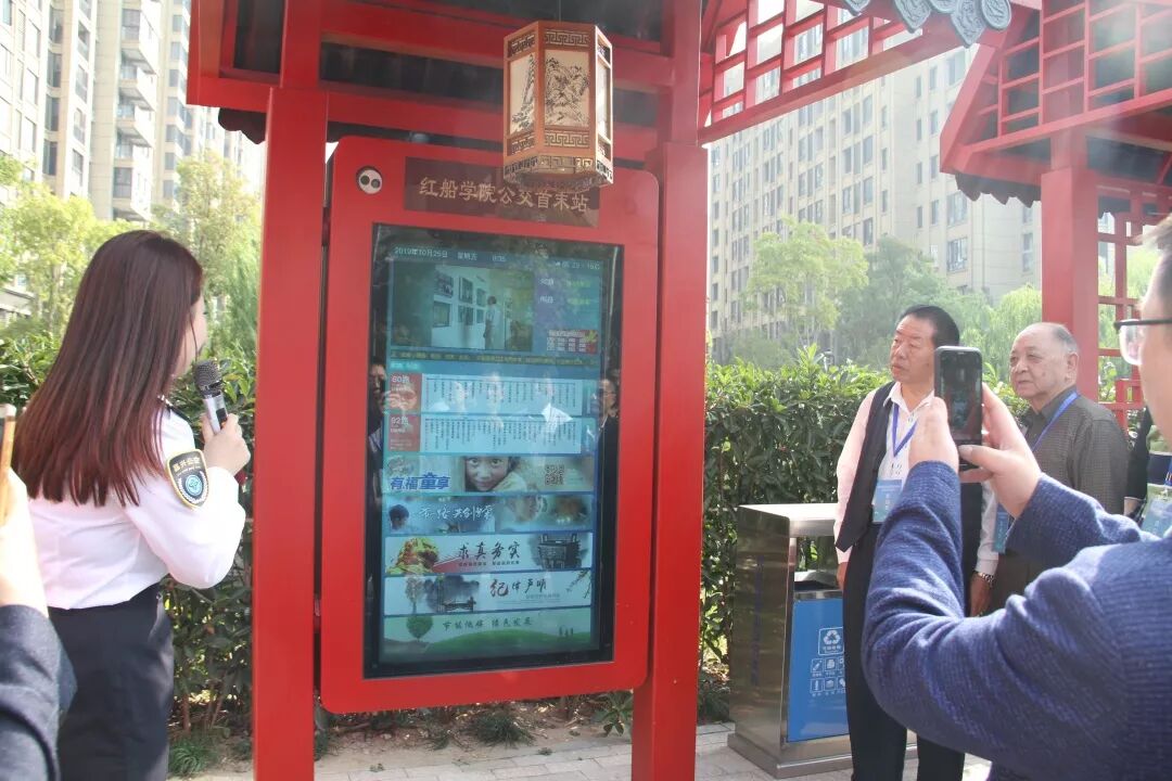 在红船学院的公交首末站点上,各地代表还参观了“烟雨江南”式样的智慧公交站台,对功能强大的站台赞誉有加。