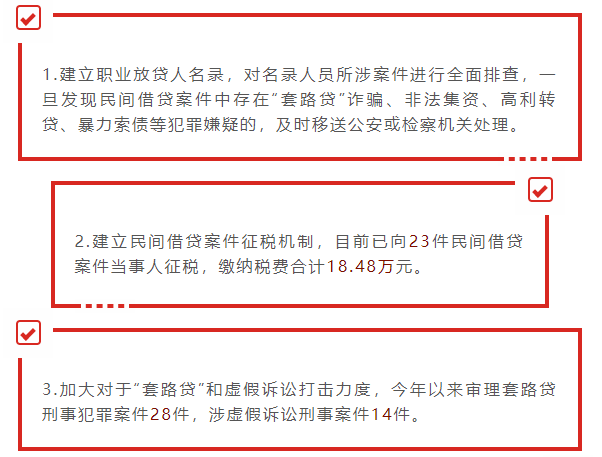 今年以来,全市法院充分发挥司法职能,强化部门联动配合,民间借贷协同治理成效明显,全市法院1至9月民间借贷纠纷收案数下降27.47%,主要举措包括: