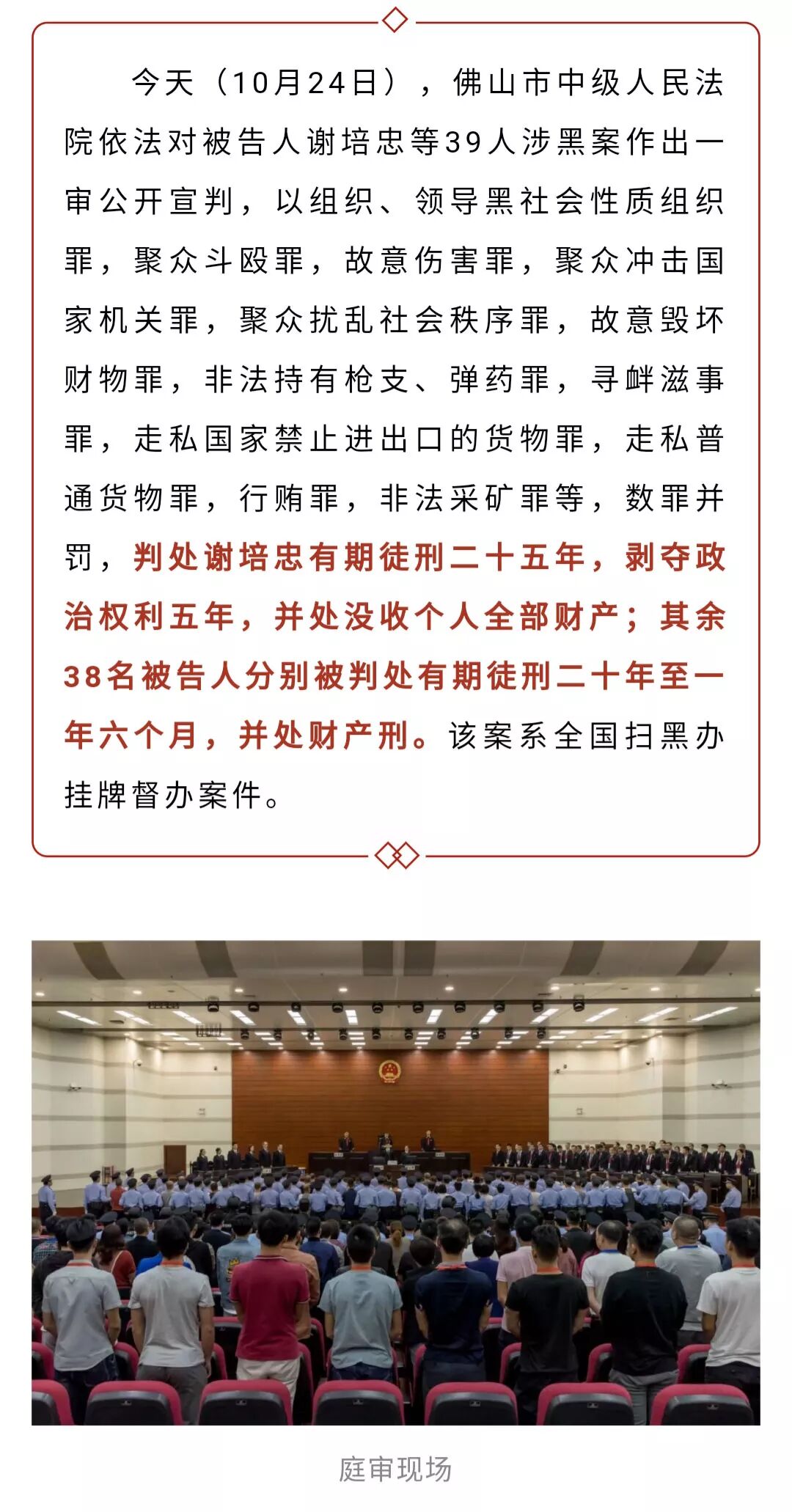 新溪谢培忠等39名被告人组织、领导、参加黑社会性质组织案一审宣判