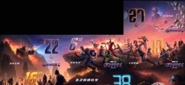 《复联4》票房海报彩蛋,目前发布了代表初代6人组的6亿海报,代表十年布局的10亿海报,代表在《复联3》里16位化灰及牺牲的英雄的16亿海报,代表第22部漫威电影的22亿海报,代表成为内地进口片票房第一的27亿海报,还有38岁成为钢铁侠的38亿海报