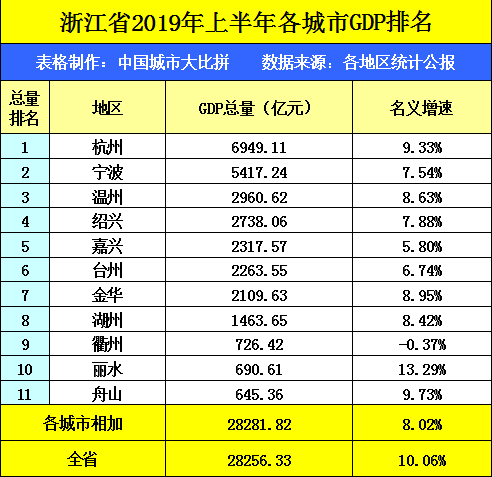 据2019上半年GDP数据显示,泉州有着高达4007.84亿元的GDP总量,增速12.32%,排名福建省内第一名,实力非常霸道,而浙江宁波上半年的GDP为5417.24亿元,增速7.54%,排名浙江省内第二名,下图为宁波