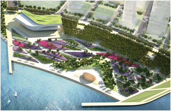 3、绝佳景观 - 占据前海桂湾首排,纵享一线绝佳海景;汇聚演艺公园、前海会议中心、剧院等城市客厅超级规划,尽享T型中轴公园生态体验。