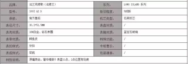 法穆兰LONG ISLAND18K白金钻石表圈石英机芯1002 QZ D 现售价:58900!180717YY01
