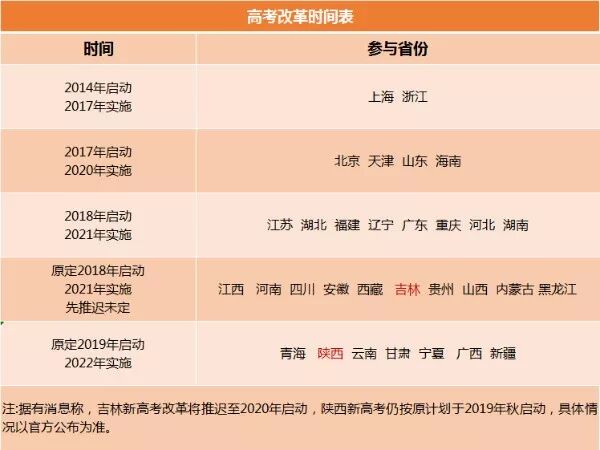 对即将升入高中或已经进入高中的同学来说,一个首要的问题就是,我会参加新高考吗?由于采用的是各地根据自身条件逐步参与施行的方式,所以不同地区的同学参与新高考的时间有所不同,具体可以参见下表。