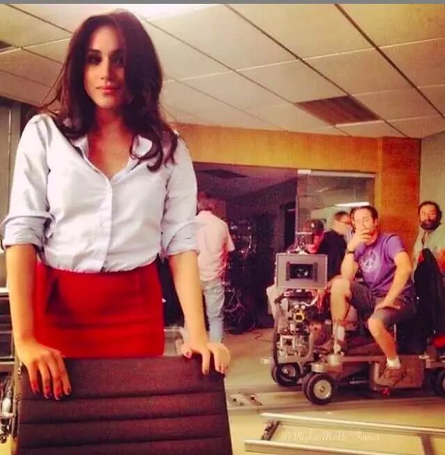 只是这件V领毛衣塞进铅笔裙里,大概皮质容易显腹部,梅根又还没修好身,她就把裙子往上拉,腰线上提,上半身立刻短了一截。