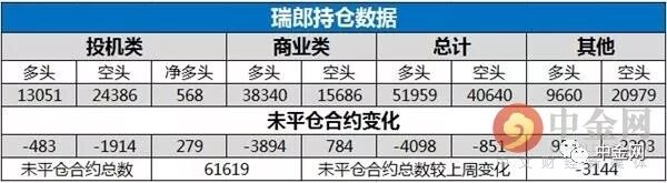 投机者持有的瑞郎投机性净空头减少1431手合约,至11335手合约,表明投资者看空瑞郎的意愿降温。