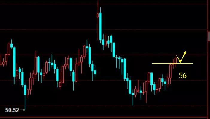 操作建议策略一:56附近多,止损55.6,目标57-57.7
