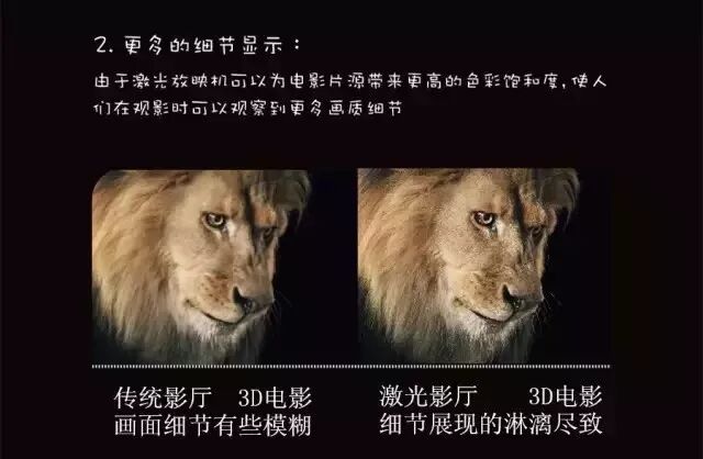 无散斑:由于激光的放映系统高级中的特点,反馈在画面上更加逼真的图像信息!从此告别3D散斑
