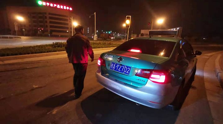 由于夜间过往货车、工程车多,同时有下夜班或赶早市多的居民骑车经过,在场的交警又找来警示牌加强警示,并靠近来车方向指挥车辆减速避让。