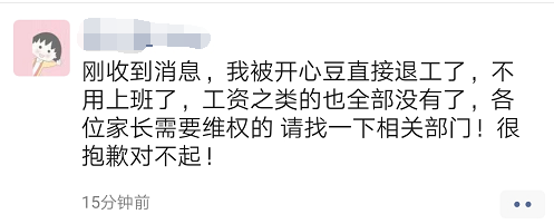 截至发文前,维权群还在持续不断地加入开心豆学员家长...总部已经人去楼空家长到达时员工已经在整理东西准备离开公司