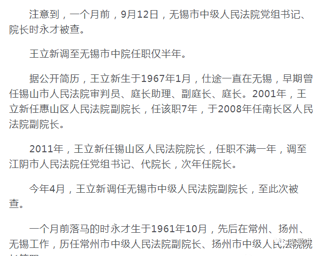 10月24日,据江苏省无锡市纪委监委网站消息,无锡市中级人民法院党组成员、副院长王立新涉嫌严重违纪违法,目前正在接受纪律审查和监察调查。