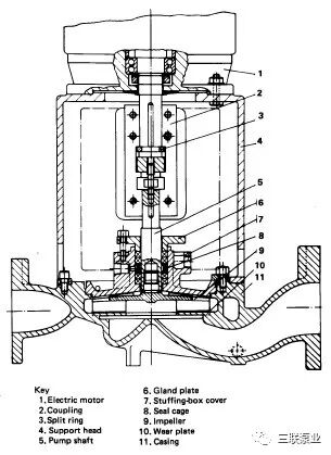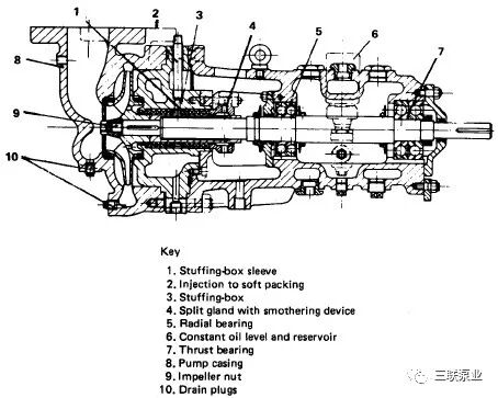 6—轴套;7—联轴器;8—轴承体;9—填料压盖;10—填料