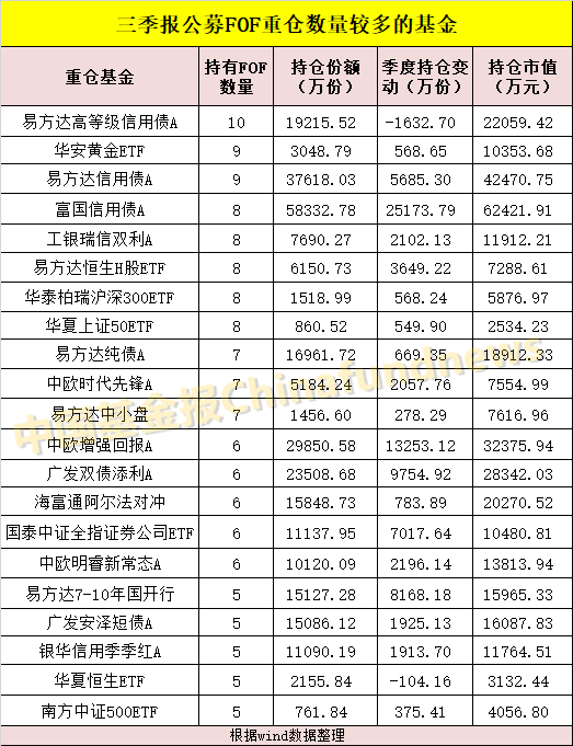 火热的基金三季报已经披露完毕,作为资产配置专家的FOF基金经理们的重仓基金备受市场关注。