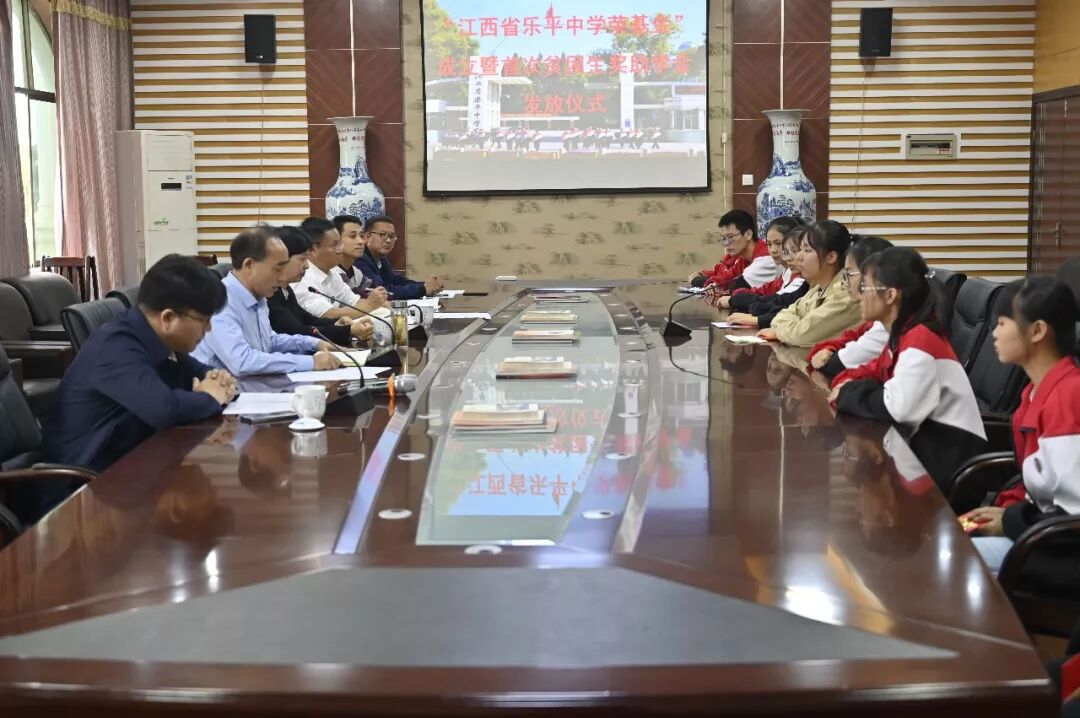 10月25日上午8点,在乐平中学行政楼四楼会议室举行了“江西省乐平中学荣基金”成立暨首次贫困生奖助学金颁发仪式,荣基金副秘书长、校友彭季女士和捐赠人代表曾德华先生亲临现场,本次活动由校长曹晓泉亲自主持。
