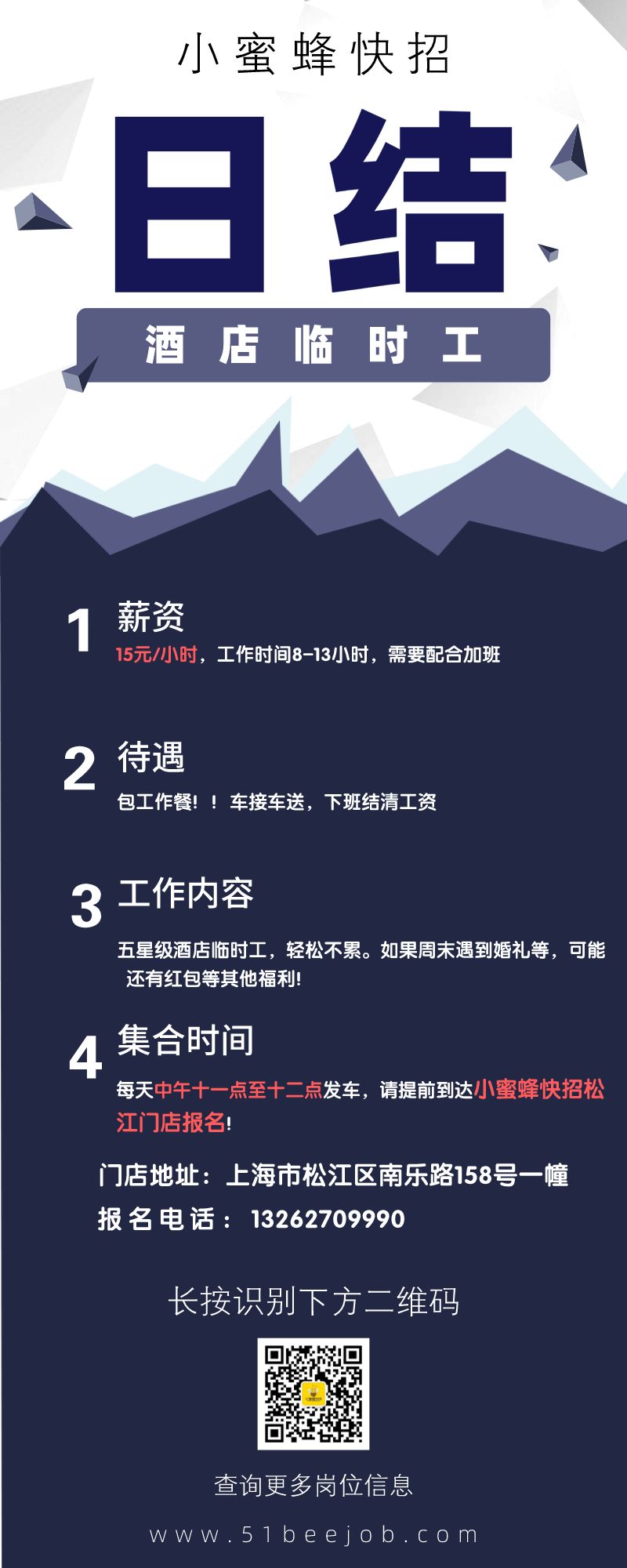 小蜜蜂快招松江门店开启临时工招聘啦!