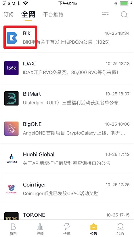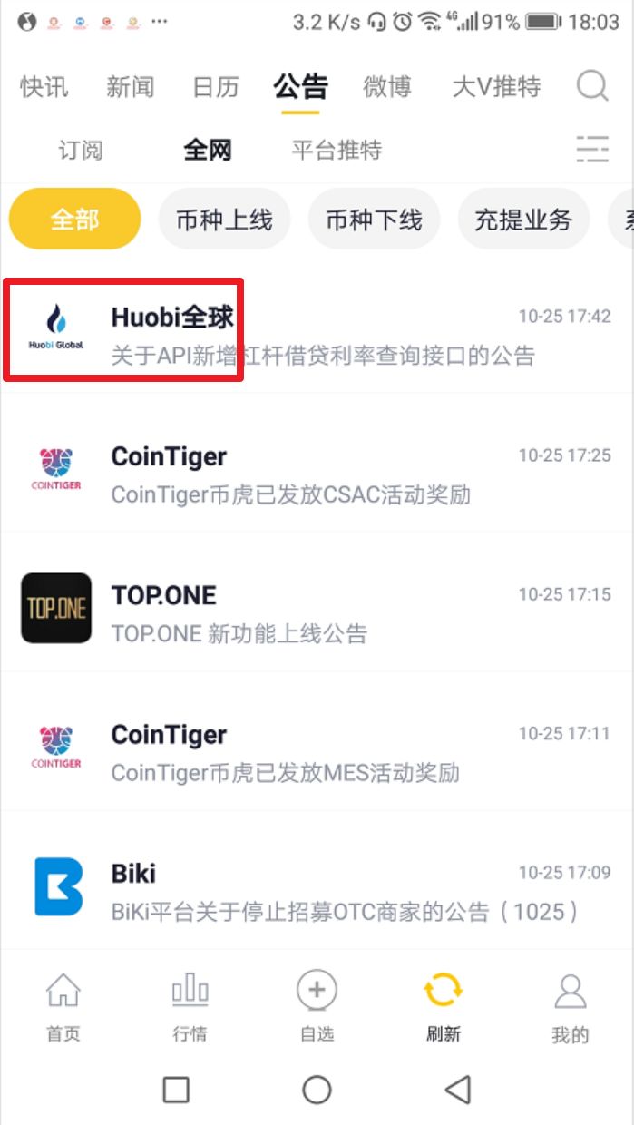 4.【公告】页面,新增单个交易所公告列表页面。点击交易所头像/名称,即可进入该交易所的公告列表页面,查看该交易所发布的所有公告,是不是很方便呢!