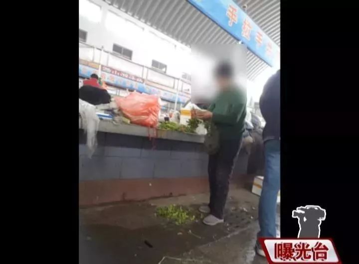 在一个摊位旁记者看到,业户正把择下来的菜叶子随手扔到地上,而不远处,两位保洁人员正忙着清理大堆的垃圾。