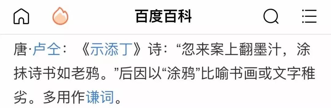 后来人们便从卢仝的诗句里得出“涂鸦”一词,流传至今