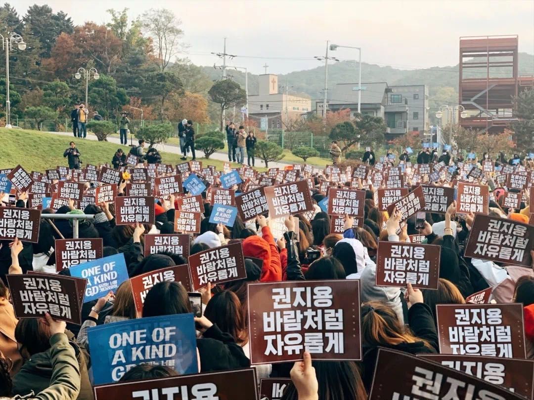 来自中日韩几千粉丝到场欢迎,排面足足的。从26日凌晨开始,全世界各国和地区的粉丝们都聚集在龙仁陆军地面作战司令部等待权志龙退伍