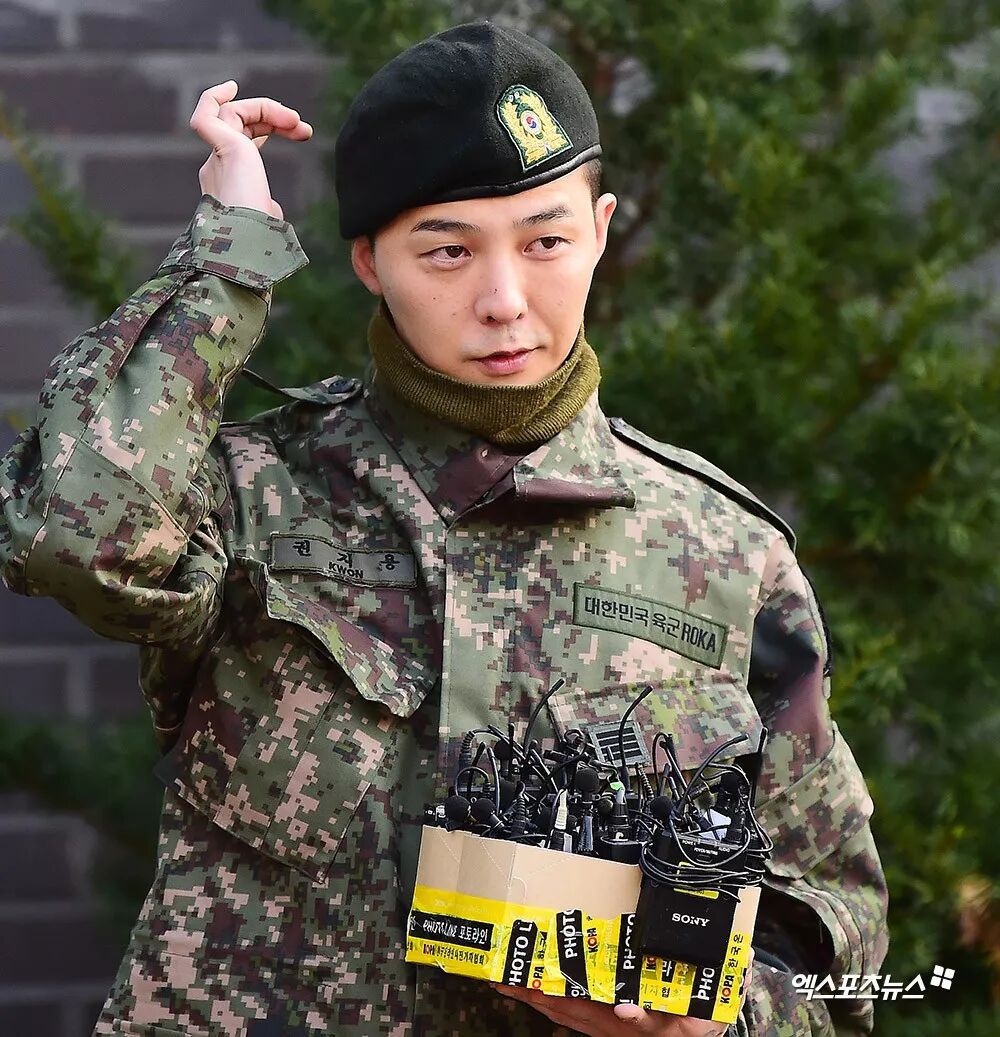 权志龙退伍高清图,脱下帽子新发型太好看!