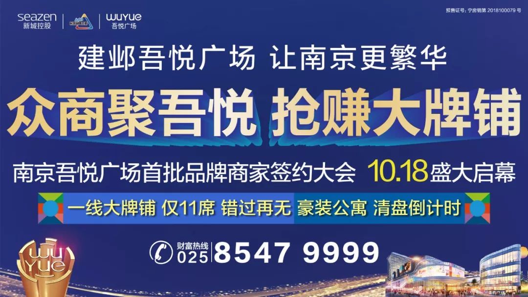 作为新城控股布局南京的第2座吾悦广场、全国第33座吾悦广场,新城控股作为全新4.0+模式升级的体验化商业代表,一线大牌环伺的臻稀铺位,珍罕发售,全城开抢!
