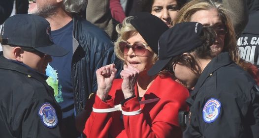 好莱坞著名电影演员简·方达(Jane Fonda)和泰德·丹森(Ted Danson)在国会大厦前被捕,他们以此提醒人们对“海洋危机”的认识