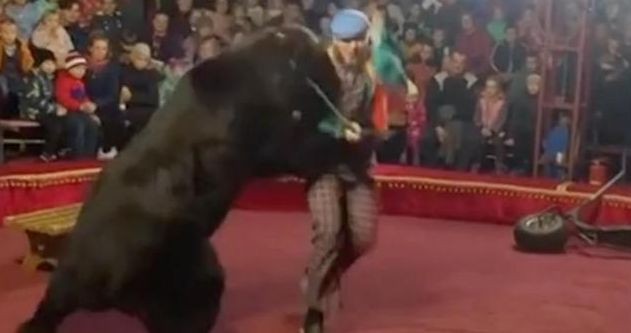 俄罗斯一个马戏团的熊在现场表演中袭击了它的教练,并在观众中引起恐慌