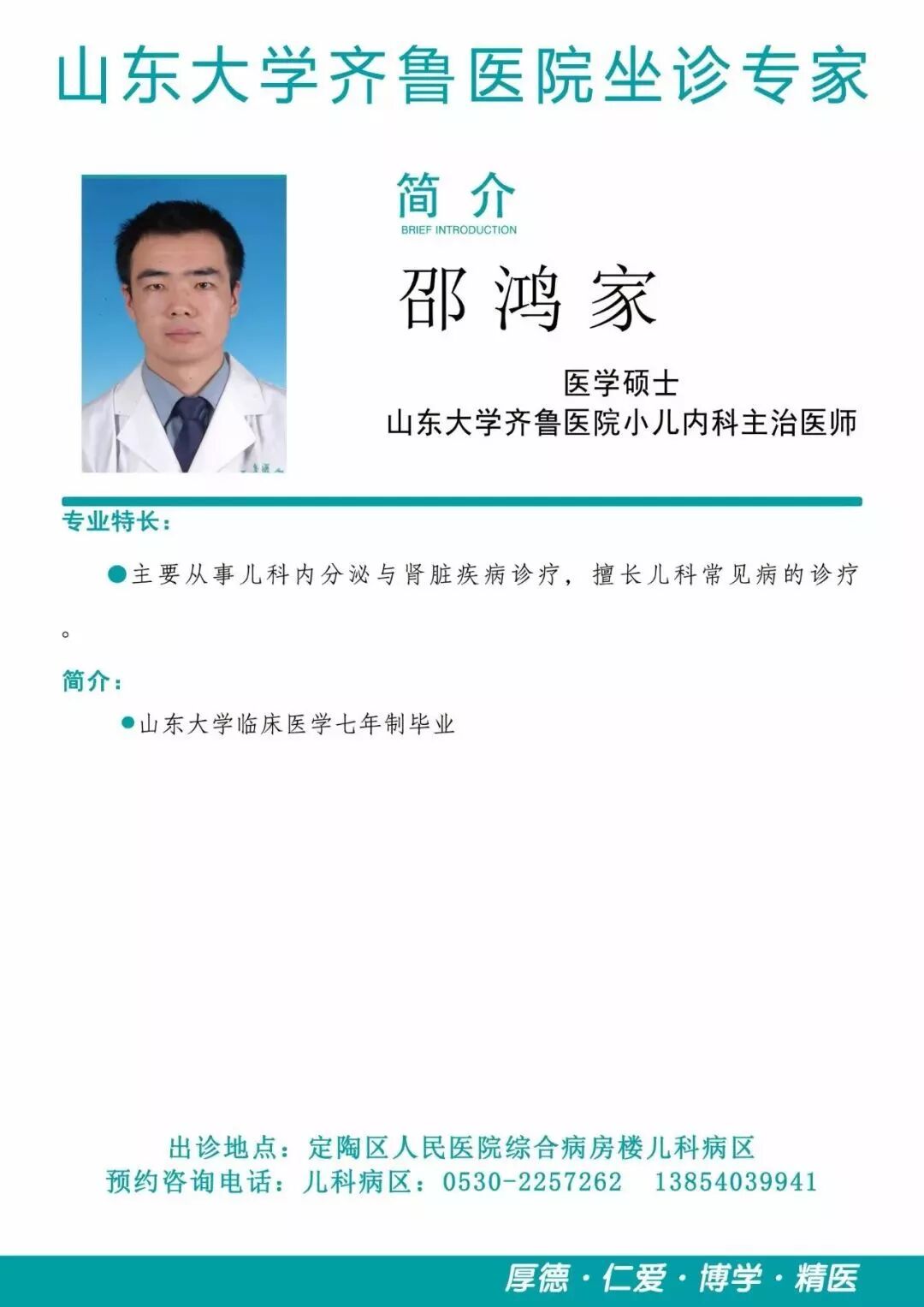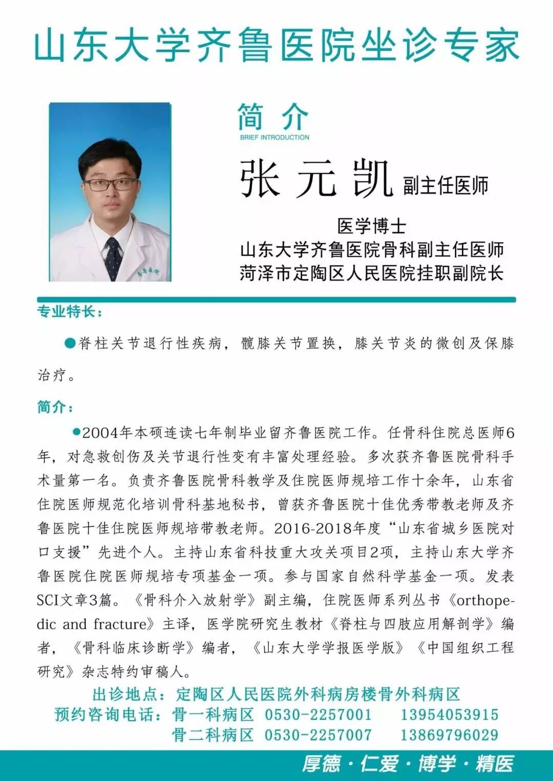 10月28-29日(下周一、二),山东大学齐鲁医院专家组将到定陶区人民医院坐诊,科室涵盖骨科、心血管内科、儿科等方面专家,以上专业方面专家将于周一、周二在区医院开展坐诊、查房、手术等业务,有就医需求的定陶区及周边群众可关注定陶区人民医院公众号了解相关信息,并预约咨询。