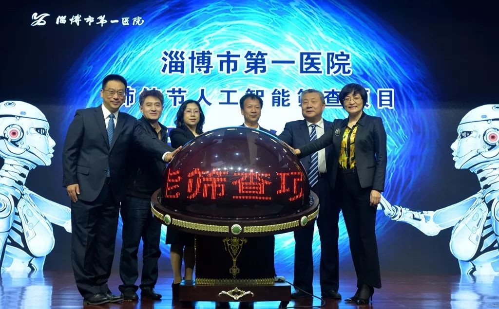 启动仪式中与会领导嘉宾共同按亮“淄博市第一医院肺结节人工智能筛查项目正式启动”水晶球,标志着人工智能正式走进了淄博,淄博市第一医院成为智慧医院的先行者。启动仪式结束后,与会领导现场参观了淄博市第一医院的CT科、 肺结节多学科门诊、呼吸与危重症医学科、心胸外科,并对肺结节人工智能筛查项目的建设表示肯定。